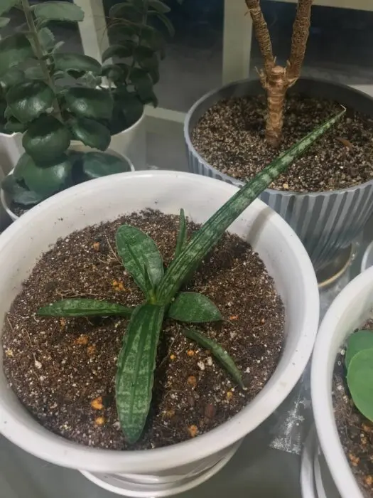 グーグルレンズの回答は「ガステリア」ですが、アマゾン画像検索では「ハルオチア」、多肉植物を知っている人に聞くと「サンセベリア・グラシリス」ではないか?というご回答を頂きました。